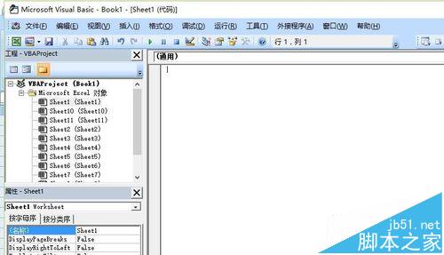 2、Alt+F11,打开VBA编辑界面,双击左侧任意一个工作表,使代码编辑区域显示处理