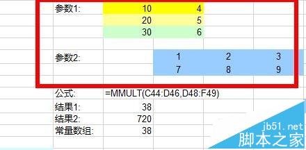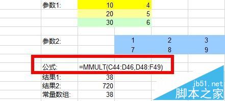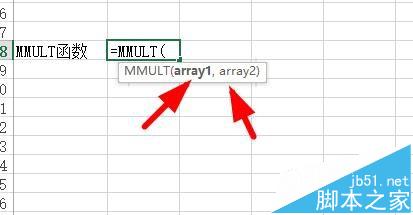 2、MMULT函数的使用格式为:=MMULT(array1,array2)。注意此处是两个数组。