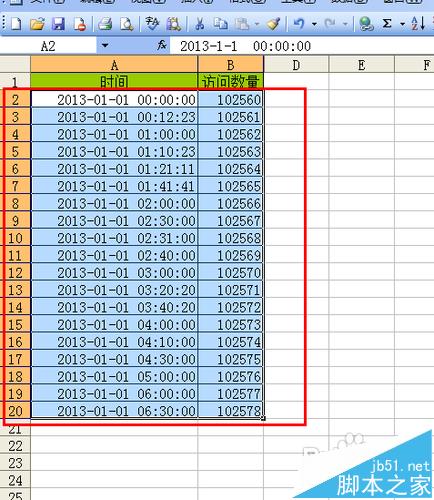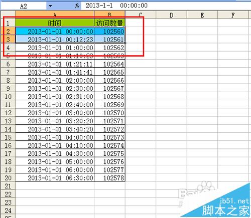3、接下来,我们选中前两行数据,这里说明一下,为什么要选择前两行,而不是其他的,因为我们要进行的隔行填充,所以,我们复制的格式必然要跟复制数据源格式一致,所以选择两行。