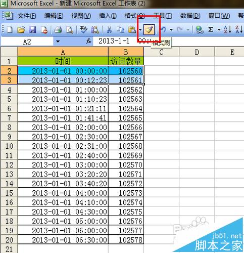 4、点击小工具栏中的格式刷,将我们选中数据的格式进行复制。