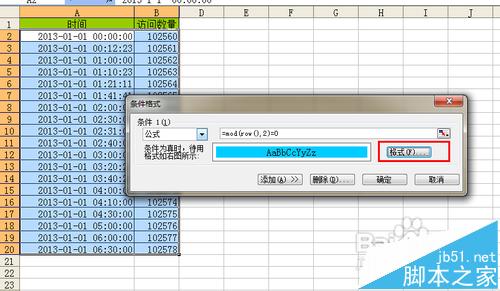 3、然后,我们设置一下格式,如果是偶数行,则显示蓝色。