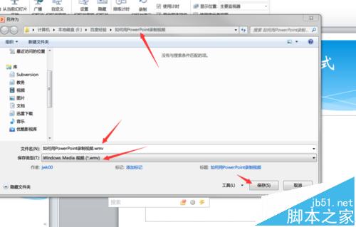 10、选择保存的文件夹,输入需要的文件名,并选择保存类型,默认时,会保存为WMV格式,这是Windows的默认格式,兼容性很好。点击“保存”按钮,开始保存。