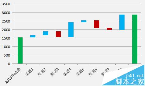 瀑布图常用于表示起始时间和终止时间之间某一系列数据在各个流程中的变化过程,瀑布图的好处就在于既能反映过程的变化量,又能反映每次变化的汇总结果,本例阐述瀑布图的制作过程。