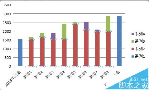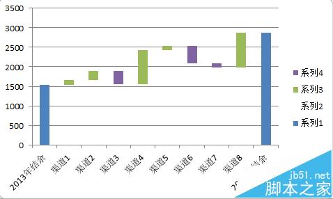 4、在图表中选中“占位序列”,设置填充颜色为无填充,就可如图2所示,得到基本的瀑布图。