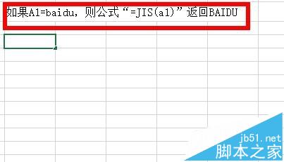 5、接着,我们在图示的单元格输入公式:=JIS(a1)。