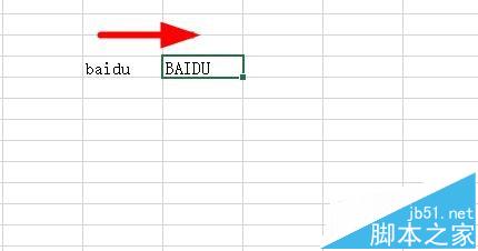 4、在如图所示的案例中,我们在空白单元格输入测试数据“baidu”(注意这里全是小写)。