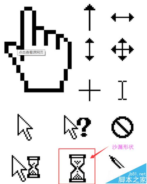 7、沙漏形状。当正在执行某个程序,或是正在读之一磁盘时,鼠标为该形状。这时用户应等待片刻,待鼠标形状还原成其他形状后再操作。