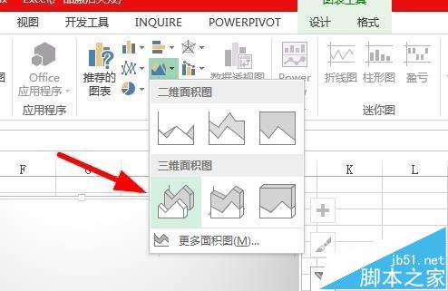 3、在图示的案例中,我们选择“三维面积图”,在图示的箭头处单击一下三维图即可。