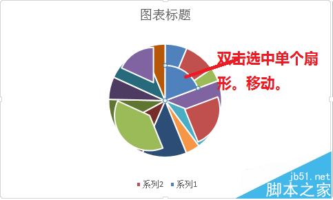 2、双击选中单个扇形,移动——调整。如图所示。