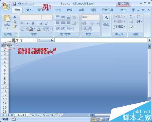 1、如图2的画面,首先鼠标光标移动到列标和行号左上角的全选按钮附近,接近全选按钮与行号交接处边缘,当鼠标指针变成上下箭头推开的标志时,右击鼠标,选择“取消隐藏”即可恢复所有隐藏的列。