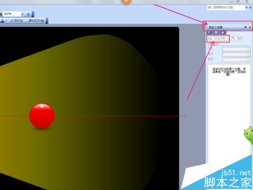 首先选中红球,添加动画,然后调整到参考直线,再调整路径的长度。因为模拟的是光滑水平面,可以适当把红球的动作路径加长,使效果更加明显。