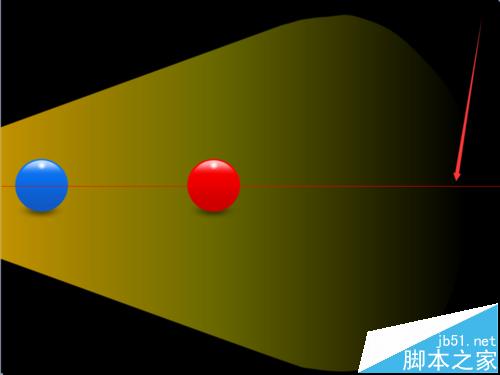 3、绘制参考线,调整两个小球到同一直线。在图中中间位置,画一条水平参考线,调整两个小球的中心和直线重合。