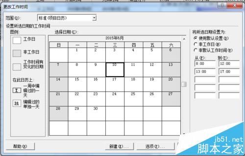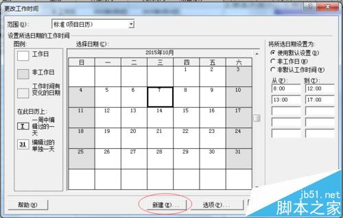 9、其他节假日的设置按照这个步骤进行配置就好了,以后在新建的项目中选择该日历就可以了。