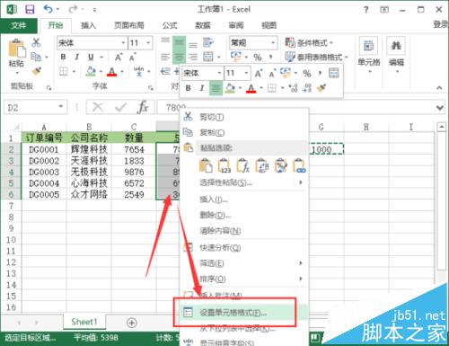 4、返回到工作表编辑窗口,点击鼠标右键,在弹出的菜单列表选项中点击“设置单元格格式”选项。如图所示;