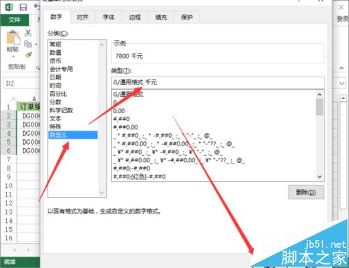 5、在打开的设置单元格格式窗口中的“数字”选项卡下,分类选择为“自定义”,类型后面再加上【千元】二字。然后再点击“确定”按钮。如图所示;