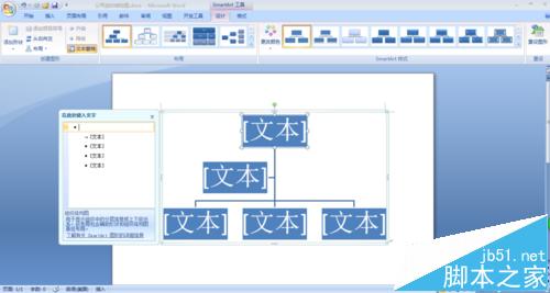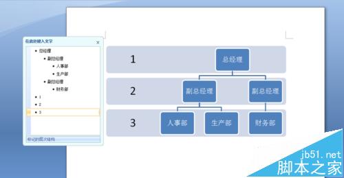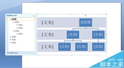 7、在插入的图形中,单击“在此处插入文字”任务窗格中第一行文本,并输入文本“总经理”。