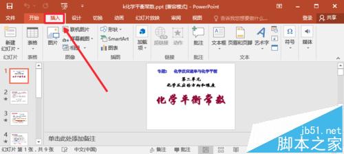 1、打开需要添加背景音乐的PPT,然后在一张PPT上点击插入菜单。