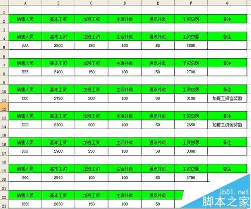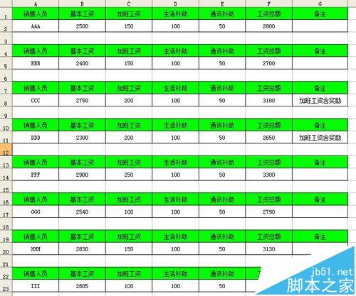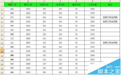 1、例如有如下图所示的工资表。