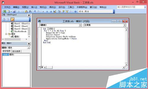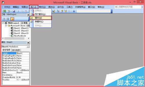 7、打开模块,并在模块中输入下列代码: