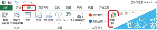1/选中数据区域——点击插入——推荐的图表——三维气泡图。