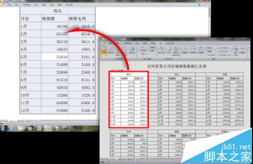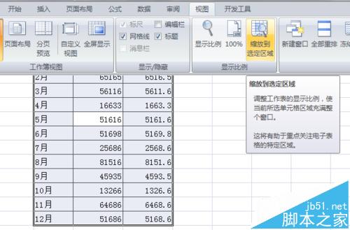 6、按下“Ctrl + F1”组合键,隐藏 Excel 窗口上方的功能区;点击“西北”区域的任一单元格,再按下“Ctrl + A”组合键,选中整个“西北”区域;依次点击“视图”选项卡——“显示比例”组——“缩放到选定区域”按钮。