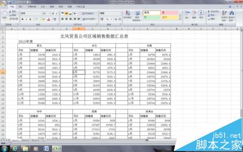 1、打开各区域汇总表,这是一个常见的非标准二维模式的表格,各个业务区域按“块”排列在整个表中。因为整个表比较大,如果想突出查看某个区域,需要进行放大、滚动等一系列操作,才能做到。如果,想查看某个区域的数据,该区域自动放大、其他区域自动隐藏,那区域数据的可读性会大为提高。“自定义视图”就是为此而生的。