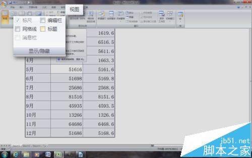 7、再依次点击“视图”选项卡——“显示/隐藏”组,去掉“编辑栏”、“网格线”、“标题”前面的对勾,让显示界面更加干净。
