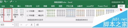 点选新数据透视表→设计→总计→选择仅对列启用。在N24格(根据新透视表的实际位置而定)写上标题:最大出货量,O24写上标题:需补进仓。在N25输入公式=MAX(B25:M25),在O25输入公式=N25-VLOOKUP(A25,A9:E17,5)。其中A9:E17的区域根据第一个透视表实际区域而定。
