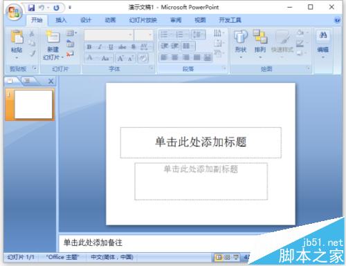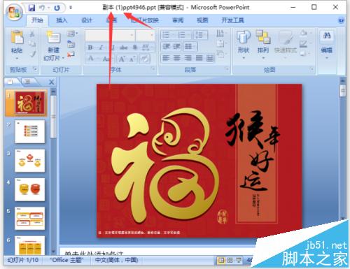 6、之后返回到PowerPoint编辑窗口,在标题栏上可以看到我们当前的文件是以【副本(1)】方式打开的。如图所示;