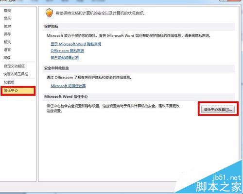 3、在“信任中心”里面有个“信任中心设置”,继续点进去~