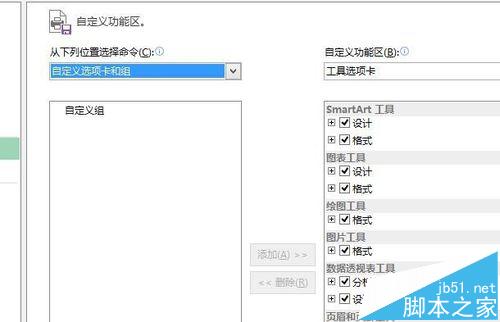 3、出现“附加工具栏”对话框,单击“复制”按钮,即可将工具栏添加到一个工作簿中(Excel2003);单击“自定义选项卡和组”,把自定义工具拖到图示的自定义组即可。