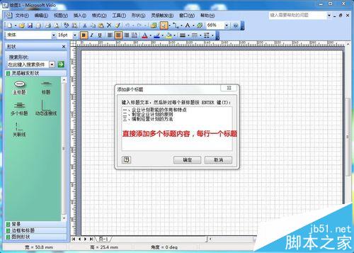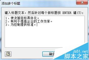 4、然后在弹出窗口中写下需要添加的副标题内容,注意每一行是一个标题内容,如下图示: