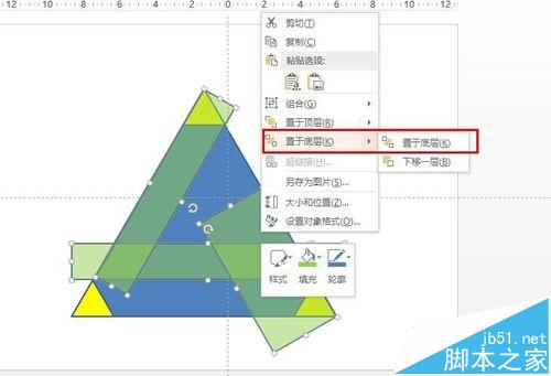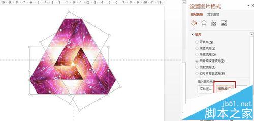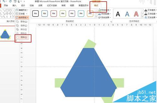 今天作一个高级的教程,使用PPT制作如图所示的震憾三角形,由于教程很长,所以我将用两个篇幅来制作,上篇是介绍如合使用形状合并,联合,组合,剪除等