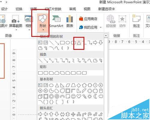 1、首先我们先点击形状,选择三角形