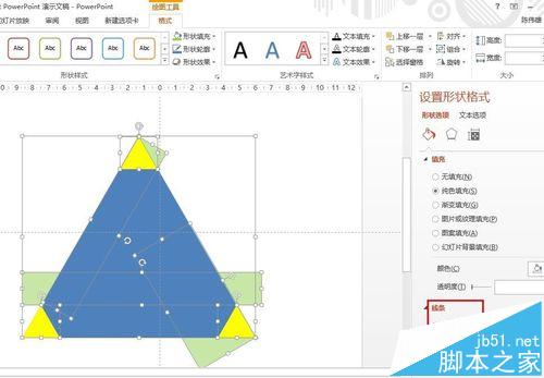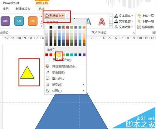4、为了可以使三角形更加清晰,这里点击形状填充,选择填充为黄色