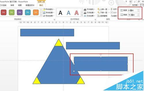 8、我们插入形状,制作一个和小三角形高一样的矩形