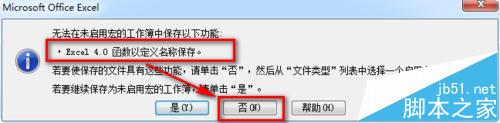 7、如果是在2007版Excel中使用宏表函数,点击保存时会弹出下面的对话框: