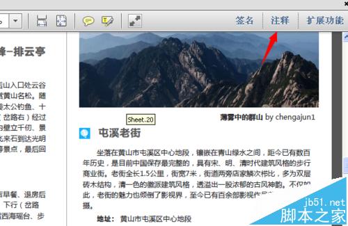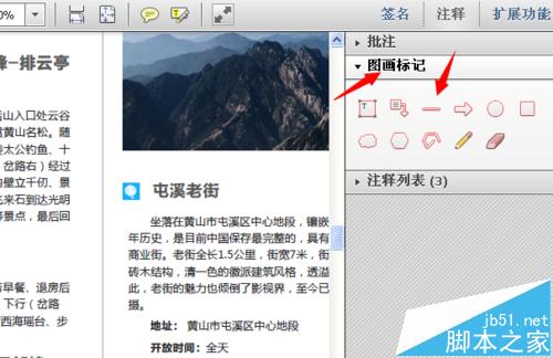 2、在打开的pdf文档页面的右上角点击“注释”按钮,如图所示。然后点击“图画标记”选项,这样您就可以在下面的图画中选择绘画线条。
