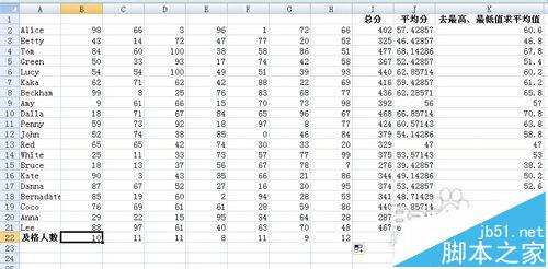在教学工作中,经常要用EXCEL统计学生成绩,其中要统计学生的及格人数、及格率,这些功能如果用菜单来操作比较繁琐,其实完全可以直接在表格中输入函数,轻松搞定。这里,向大家分享如何在Excel计算总分、平均分、去掉最高分最低分计算平均分、及格率。希望对读者朋友们有所帮助!