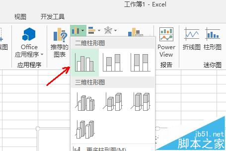2、选中A列的数据,切换到插入选项卡,点击柱形图,选择第一个样式的柱形图,如图所示,其他的也可以的