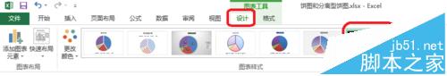 4、如图所示,美化分离型饼图。点击图表工具——设计。