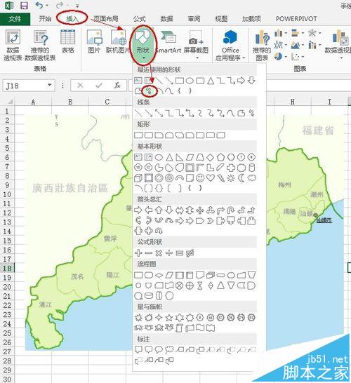 2、新建一个excel文件,插入我们下载好的地图图片。那我们后续将以插入的地图作为“底板”,开始手绘。