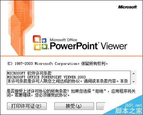 5、接下就可以移植到另一台电脑上测试刚才生成的可执行文件,打开*.exe文件,点击接受,选中ppt文件,点击打开ppt文件就可以正常播放了。