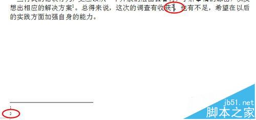 3、此时光标定位的右上方的位置就出现了一个角标1 。在页面底部出现脚注分隔线和脚注标号1。