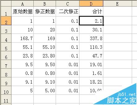 1、拿个基础例子说明了,表中前三列加起来,用公式计算得出第四列合计。目前数据是正确的。