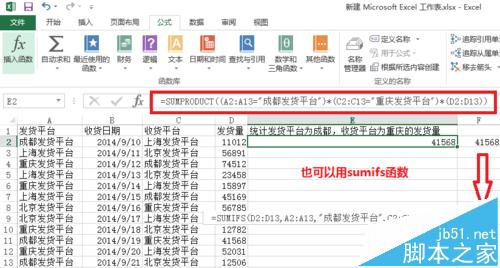 2、多条件求和——求当发货平台为成都,收货平台为重庆的发货量。