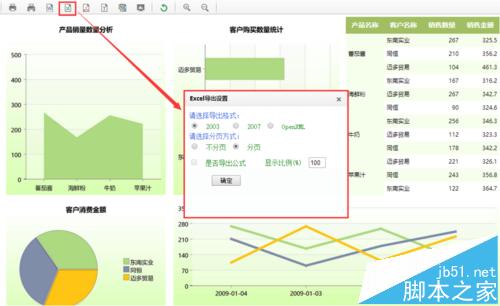 2、在展现页面点击【导出EXCEL】按钮,设置导出文件版本、分页属性、导出路径等属性并导出。