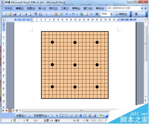 8、一个基本的棋牌就制作好了,可以开始设定9个星位,需要用到绘图工具栏的椭圆形形状,如果还没调出绘图工具栏,依次点击视图—工具栏—绘图