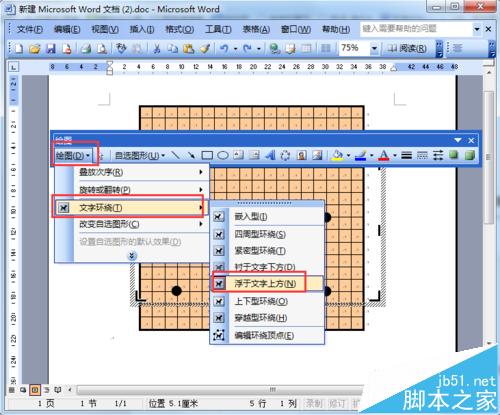 9、按住ctrl+shift键不放,点击“椭圆形形状”,画出一个圆形,然后选中文本框,依次点击绘图——文字环绕——浮于文字上方(作用是无论怎么移动文本框不会影响到表格)