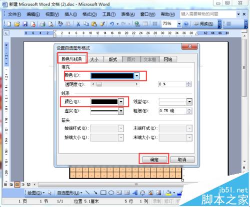 10、选中圆形形状,右键点击“设置自选图形格式”,把大小的高度和宽度改为0.5厘米,还有点击“线条与颜色”把填充与线条颜色改为黑色,点击“确定”